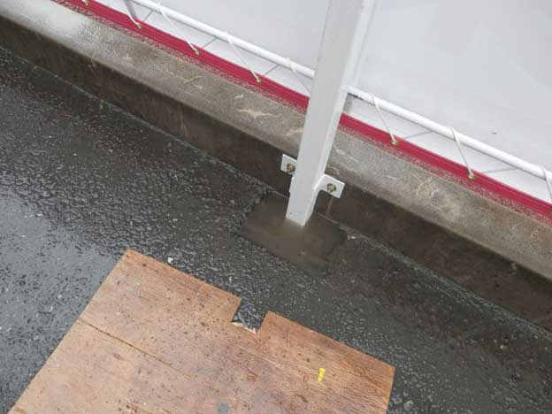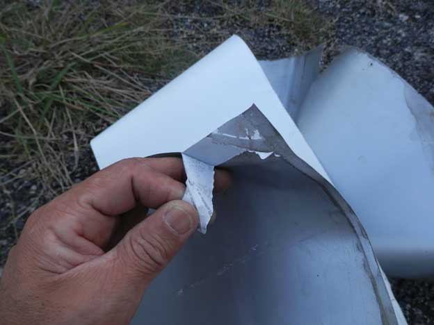 今回は、弊社が貼った下地の白シートから剥がれて来ていました。