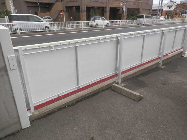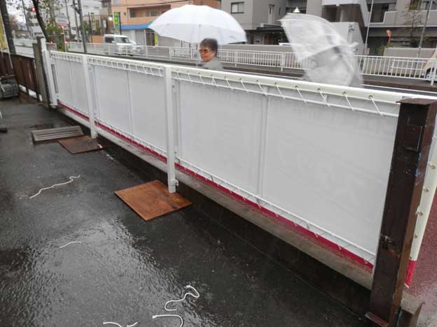 その既設のパネルは、元々のインクジェット表示を白シートを貼って表示消ししてあり、弊社はその上に重ね貼りをしたのでした。