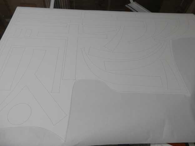 当時はその会社ではカッティングと書き文字は半々くらいの割合で、書き文字は主に舞台の後ろに吊り下げる看板とか、現場の壁面に直接文字入れする時に行っていました。