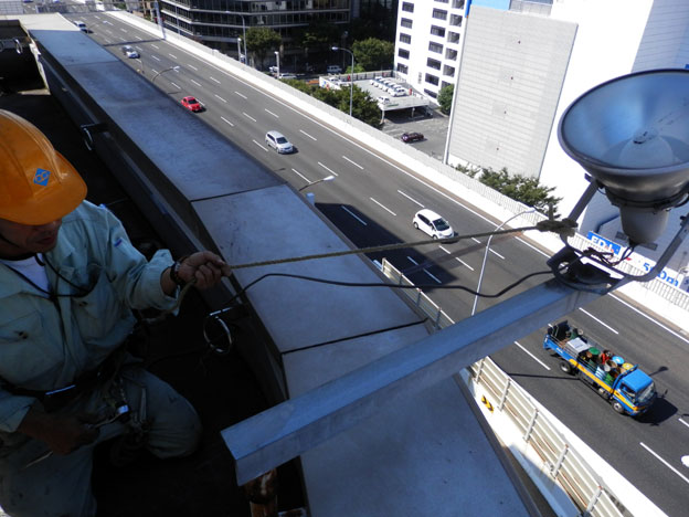 落下防止のためロープを掛けて外すだけ。
