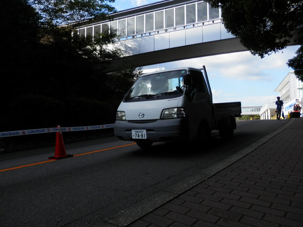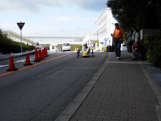 やけに速いクルマが来た・・・と思ったら、マシンを坂の上に搬送するトラックでした(笑)。