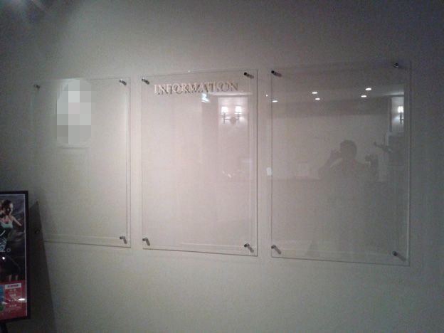 クリアのアクリル板を壁面に取り付けました。