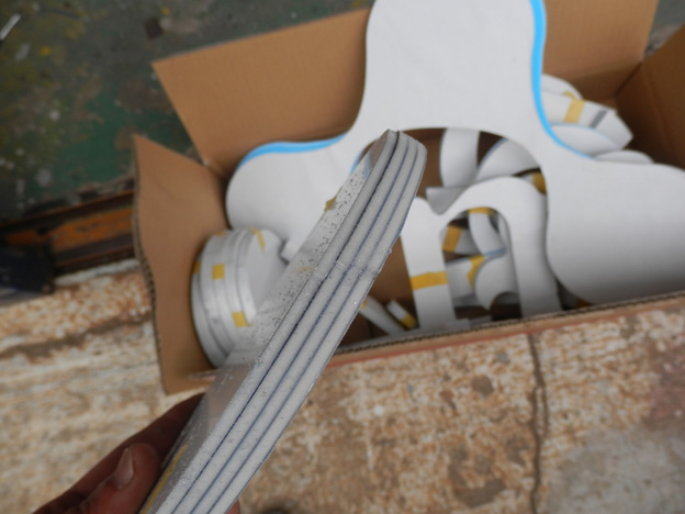 どうにか切れましたが、やはりミシンでアルミ複合板4枚重ね切りは無理があります。