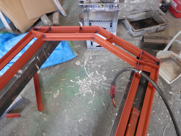 屋根型そのものは、どうって事ないのですが、今回は諸々の理由で、内部支柱と梁も同形状に組む必要があります。