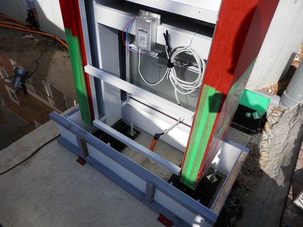 既設の地上塔の古い表示面や板金を取り外して、リニューアルします。