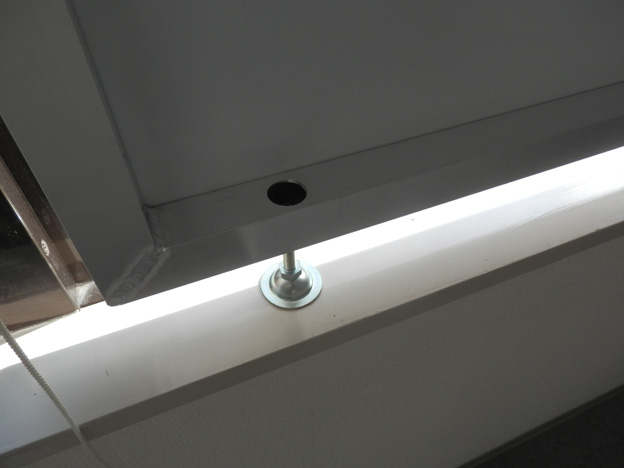 設置作業は非常に簡単なもので、上部はビス止め、下部はアジャスターボルトで固定。