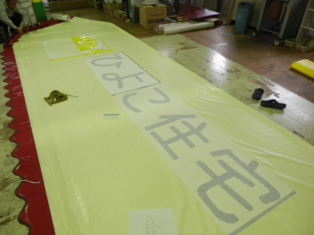 この日は、他に行灯(3m×3mくらいあって、室内行灯としては大きい)の移設作業などもありましたので、文字は取り外して持ち帰りました。