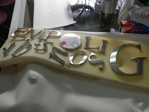 まあ、大体予想はしていたのですが、スタッド式のステンレスの文字が2組で、ネオンではなくLED。