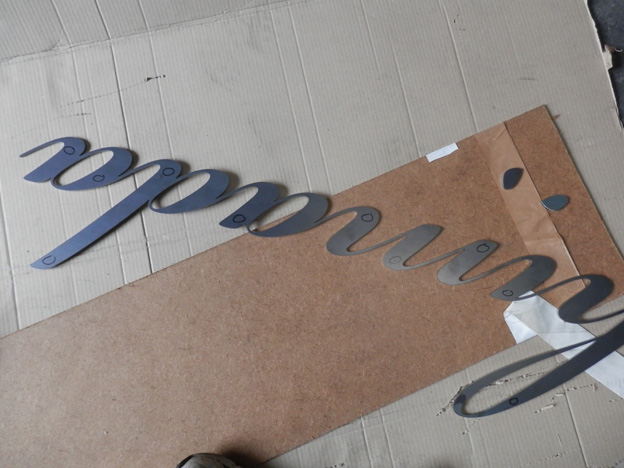 もう一つの、レーザーカット文字も取り付けます。