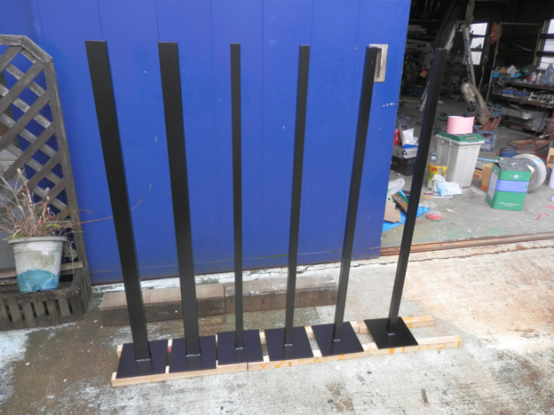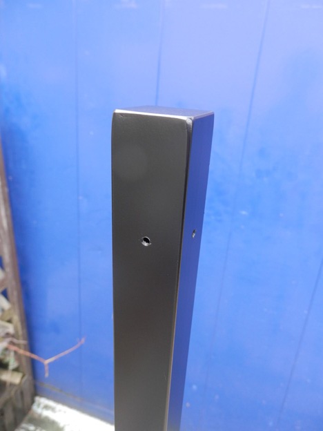200角のベースプレートに、角パイプの支柱を溶接して立てるだけのシンプルな物。