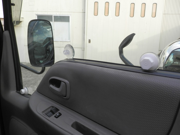 もうじき車検なので、わざわざクルマ屋さんに入庫させるのも面倒ですから、しばらくの間、吸盤をくっつけてストッパーにしておきます(笑)。