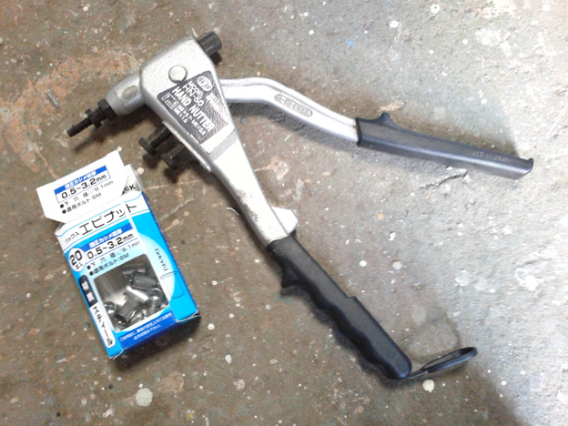 開き止め金具の取り付けには、ポップナットを使用。