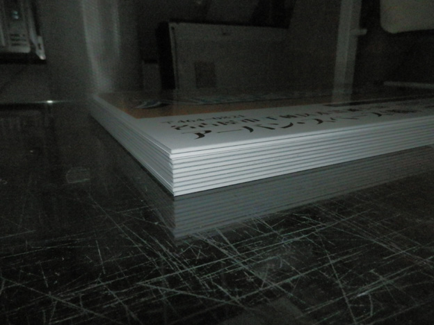 とにかくすぐ欲しいとの事で、印刷後24時間の乾燥(弊社では社内規定)後にラミネート、朝4時起きで貼って納品しました。