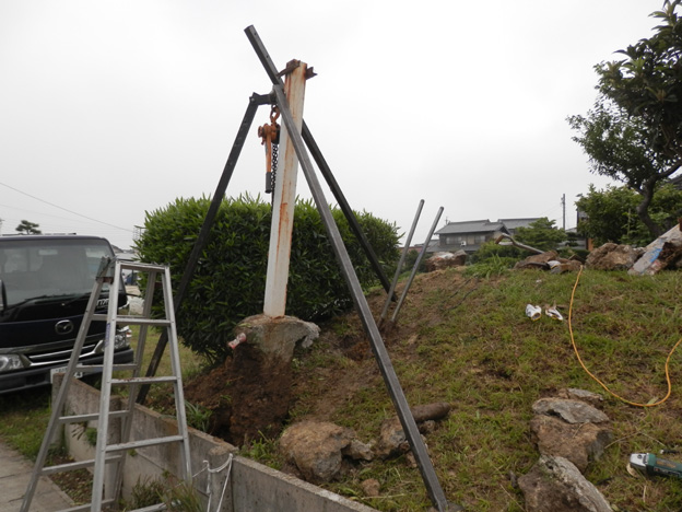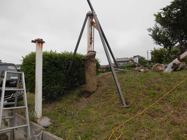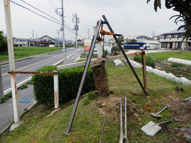 周りを掘って、タコマンで引き抜きます。
