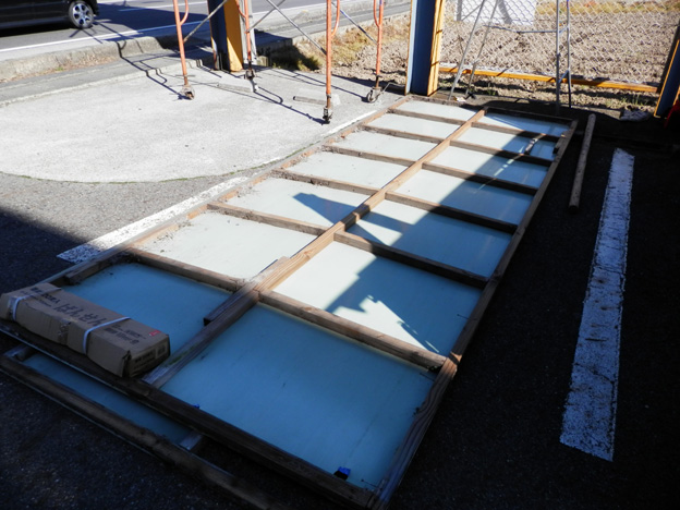 4300*4500の木枠のトタン看板で、上下しか固定されていません。
