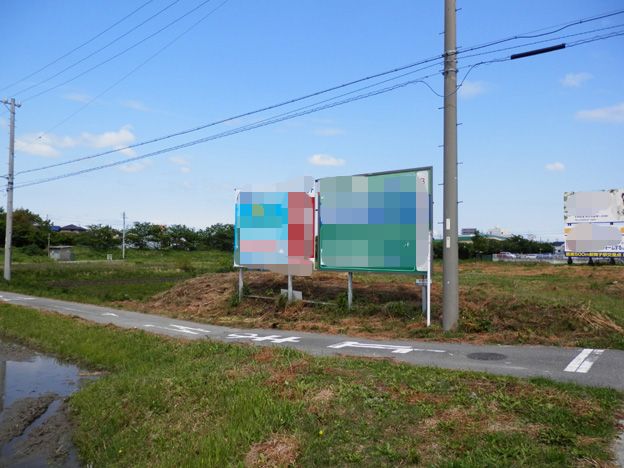 ブロックの基礎(ベースコン)が出てきてしまい、看板パネルのセンターと支柱のセンターを偏芯させる必要がありました。