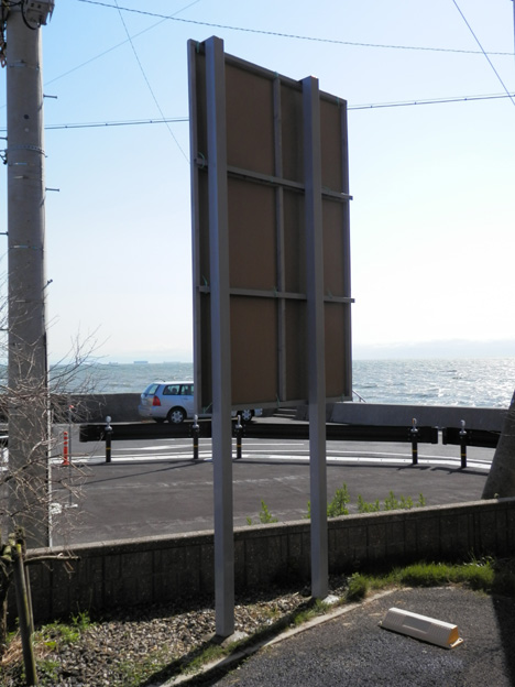 現場は土地柄なのか、かなりの強風が吹いてまして、看板パネルを運ぶのも一苦労。