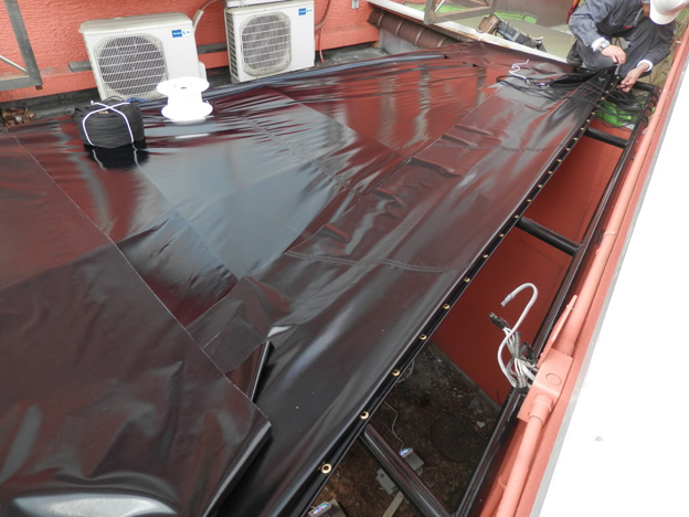 ロープの縛り方は、いまだに良く分かりませんので、テント屋さんにおまかせ(汗)。