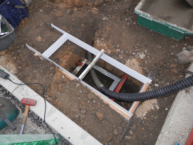 掘った穴に、アングルを立方体に組んだだけのアンカーを放り込みました。