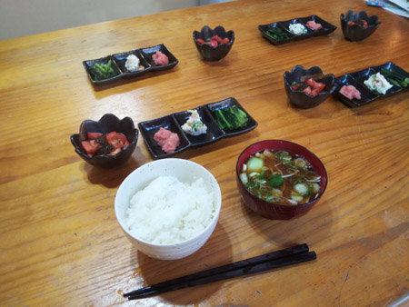 それでは腹持ちが悪いと言うことで、最近はおにぎりを合わせています。