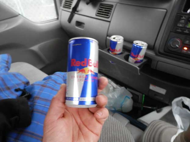 道中はレッドブル3本でエナジーチャージ。