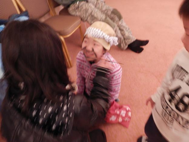 メイクには、フェイスペイント用の絵の具、「ハガレックス」という物を使いました。事後にぺラリと剥がす事ができるという絵の具です。