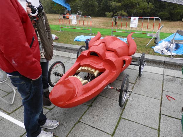 でも実際にはジャッジの方々はパフォーマンスタイムの時に初めて見て、各カートをがゴールしてから採点しているわけです。30秒パフォーマンス、コンセプト、カートの見た目、走行の面白さ、頑張り具合など全てが評価対象になっているはず。